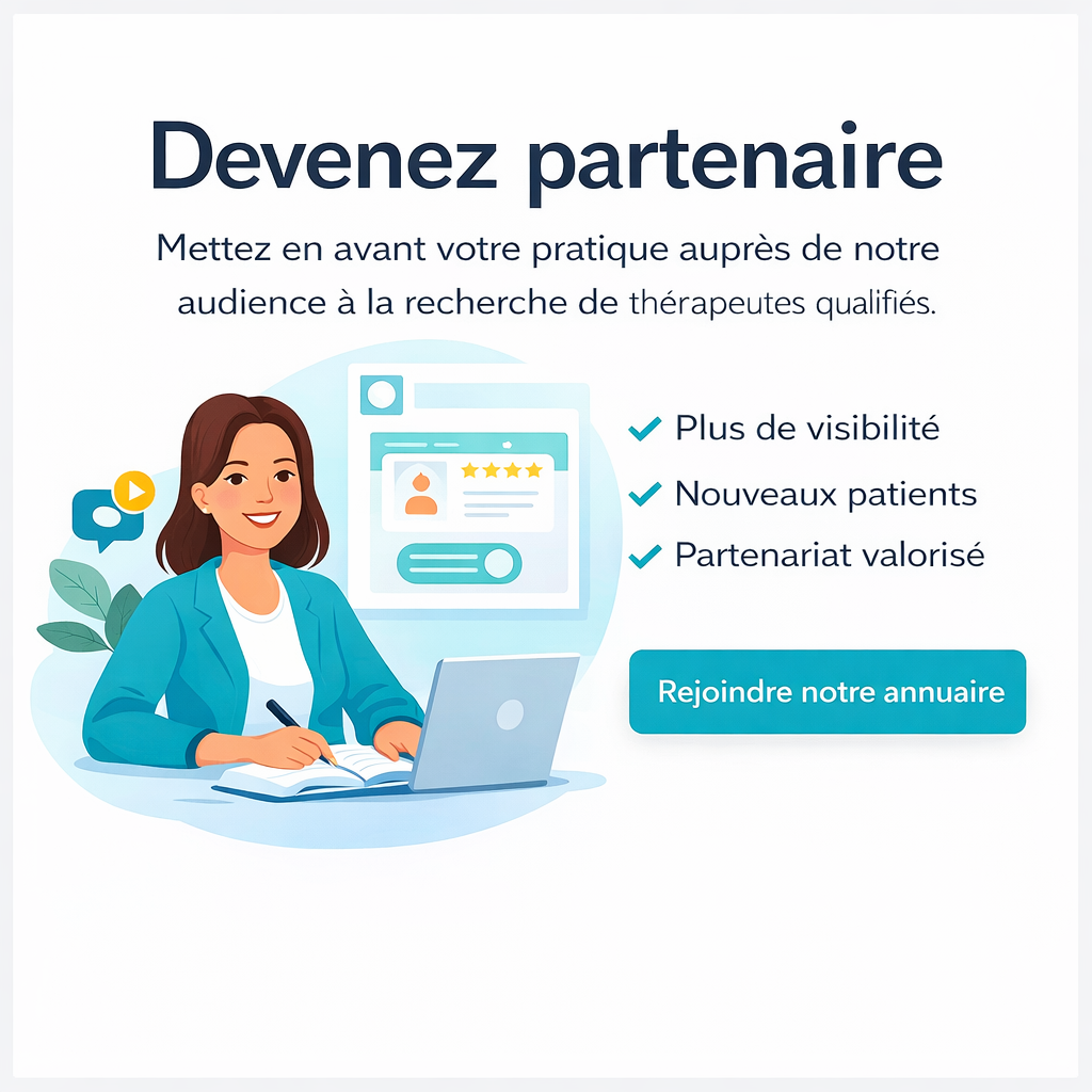 Nous n’avons pas de thérapeute partenaire dans votre ville. Vous êtes thérapeute ? Vous voulez devenir partenaire pour être mis en avant ?